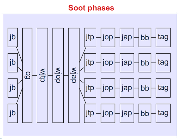 - jtp: jimple transformation pack -> intra-procedural analysis