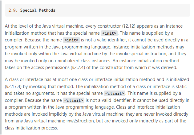 <clinit>are the static initialization blocks for the class and static field initialization.