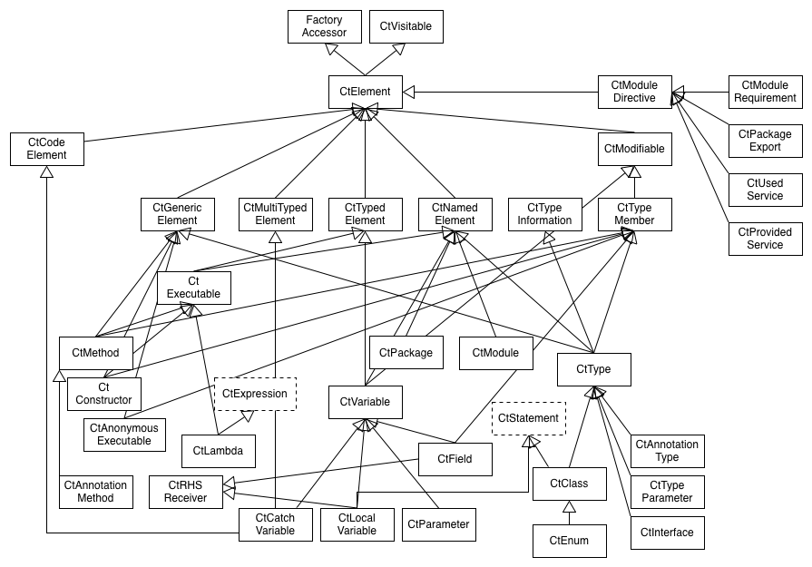 - The structural part contains the declarations of the program elements, such as interface, class, variable, method, annotation, and enum declarations.